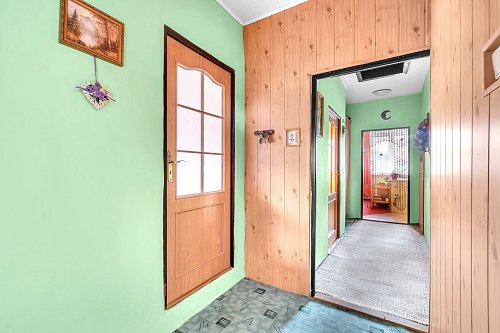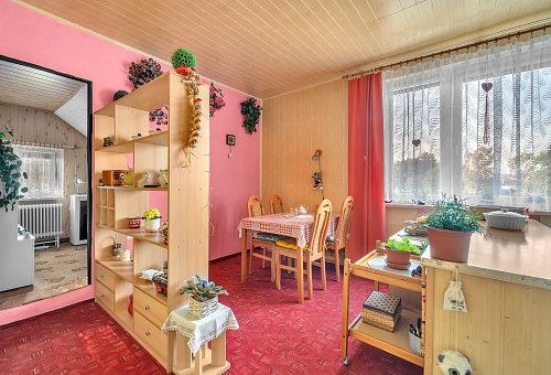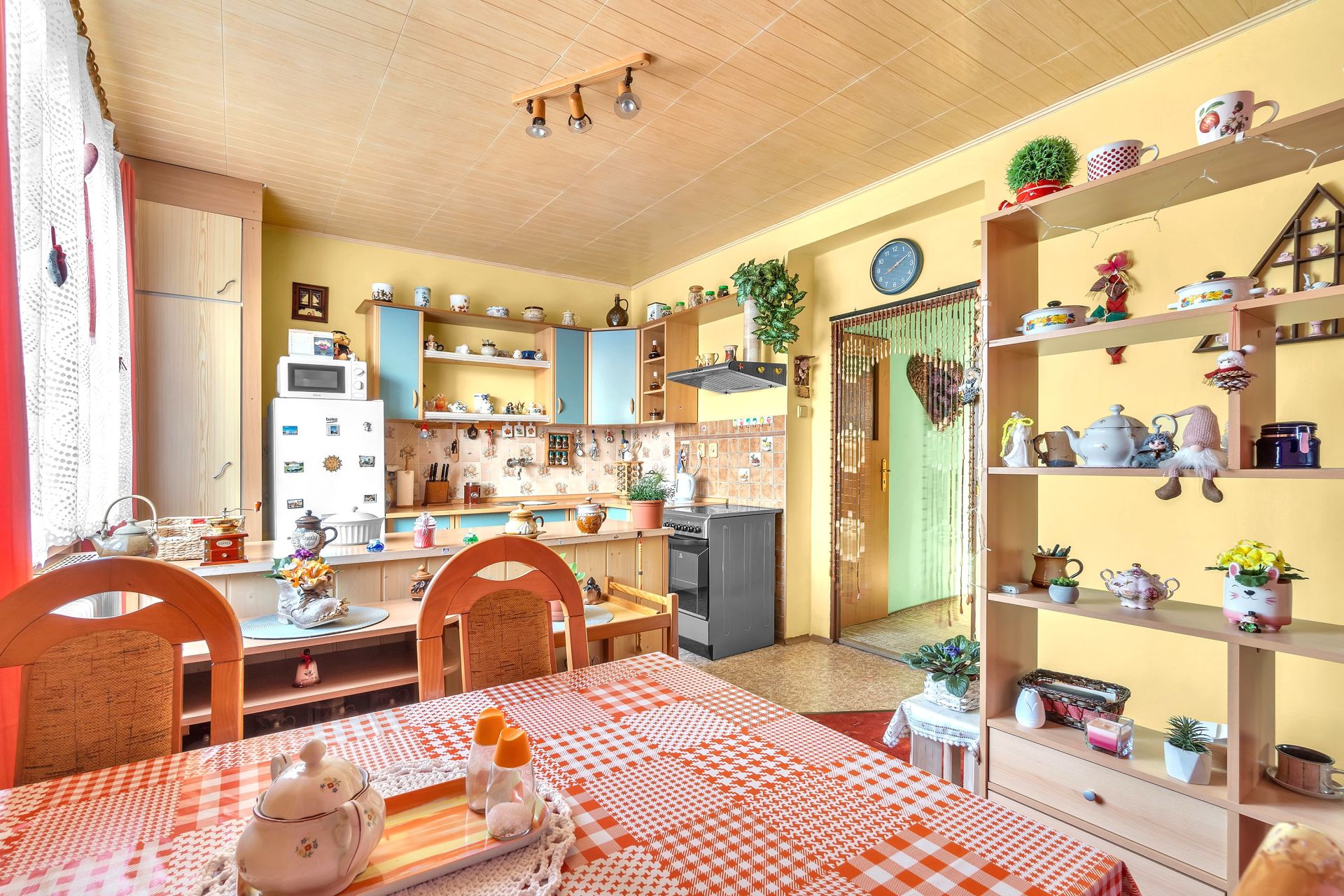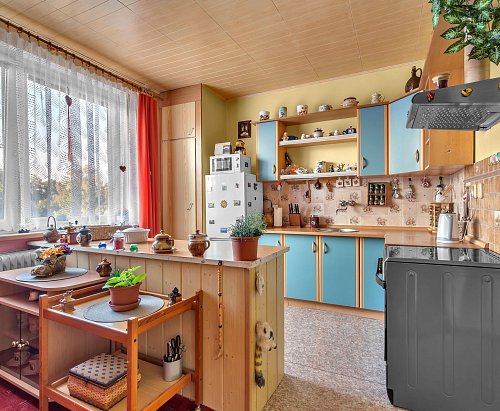 Dispozice bytu: Kuchyň s jídelnou 15,60 m2, pokoj 12,84 m2, pokoj 8,64 m2, chodba 8,02 m2, koupelna 3,96 m2, WC 0,89 m2, spíž 1,35 m2. Sklepy celkem 6,62 m2, kůlna 7,95 m2.