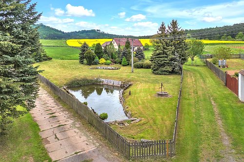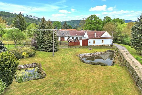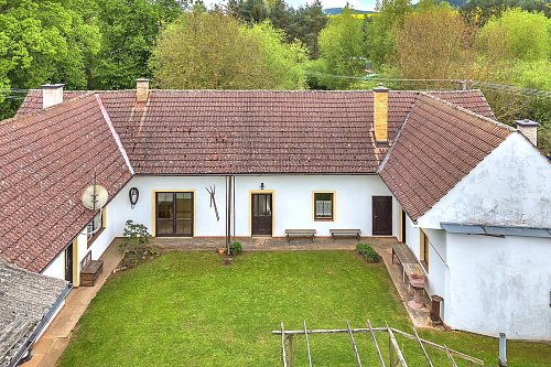 Dvorek ve tvaru „U“, ve kterém zaznívá jen bzučení včel a praskání dřeva v udírně. Za ním užitná zahrada s ovocnými stromy, zděná kůlna, dílna, garáž i vlastní studna. Celková výměra pozemků je 9.722 m² – prostoru je tu víc než dost.
