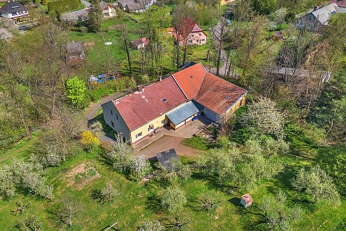 Samostatně stojící dům o dispozici 5+1 s garáží a nádhernou zahradou vás přivítá s otevřenou náručí — a s pozemky o celkové ploše 5.887 m² vám nabídne prostor, který je dnes vzácností.