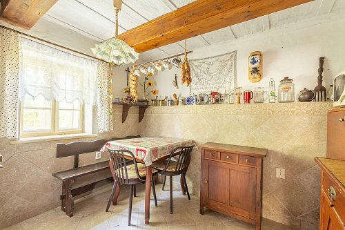 Stylová chalupa s prvky poloroubenky k rekreaci.