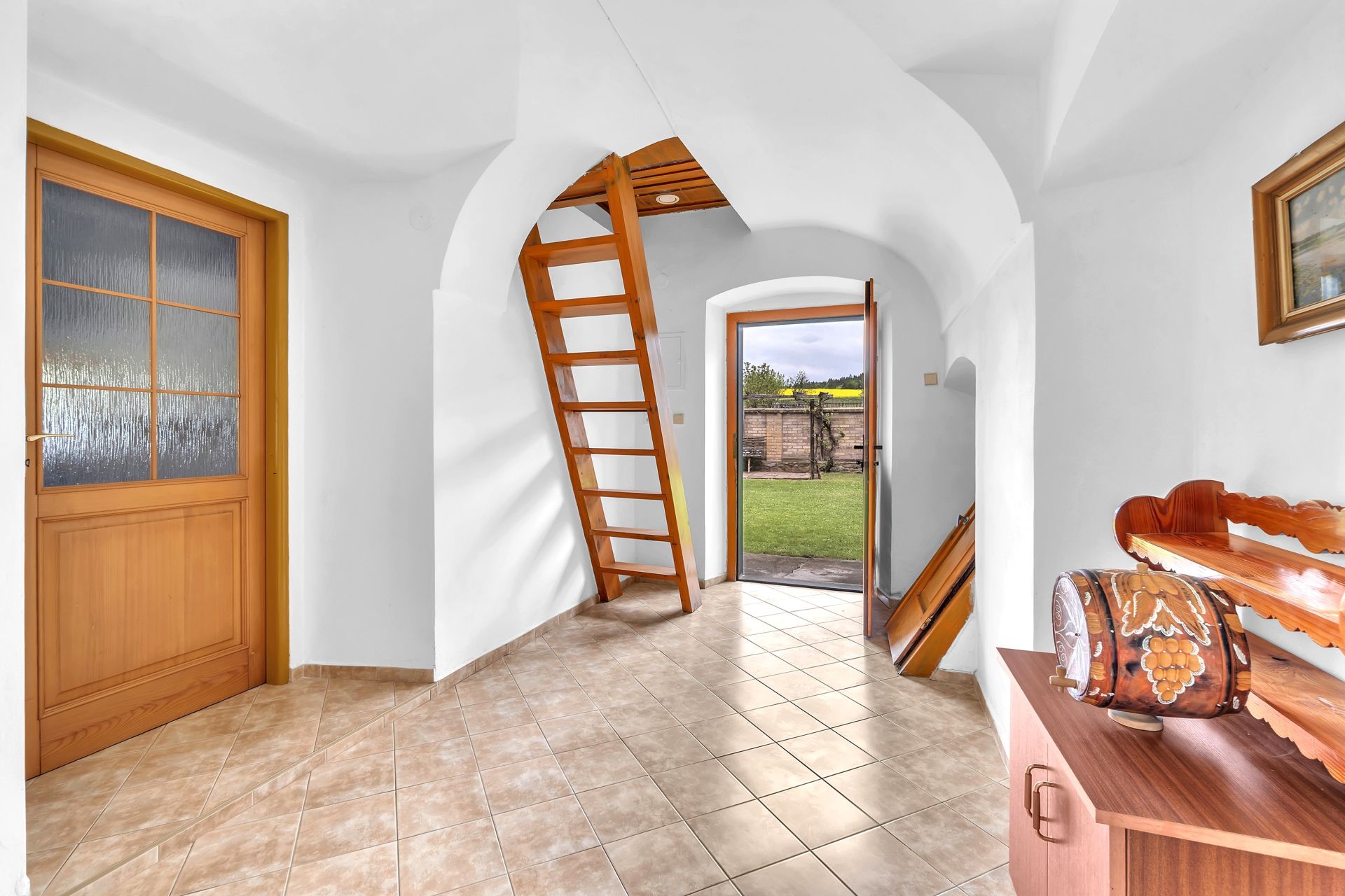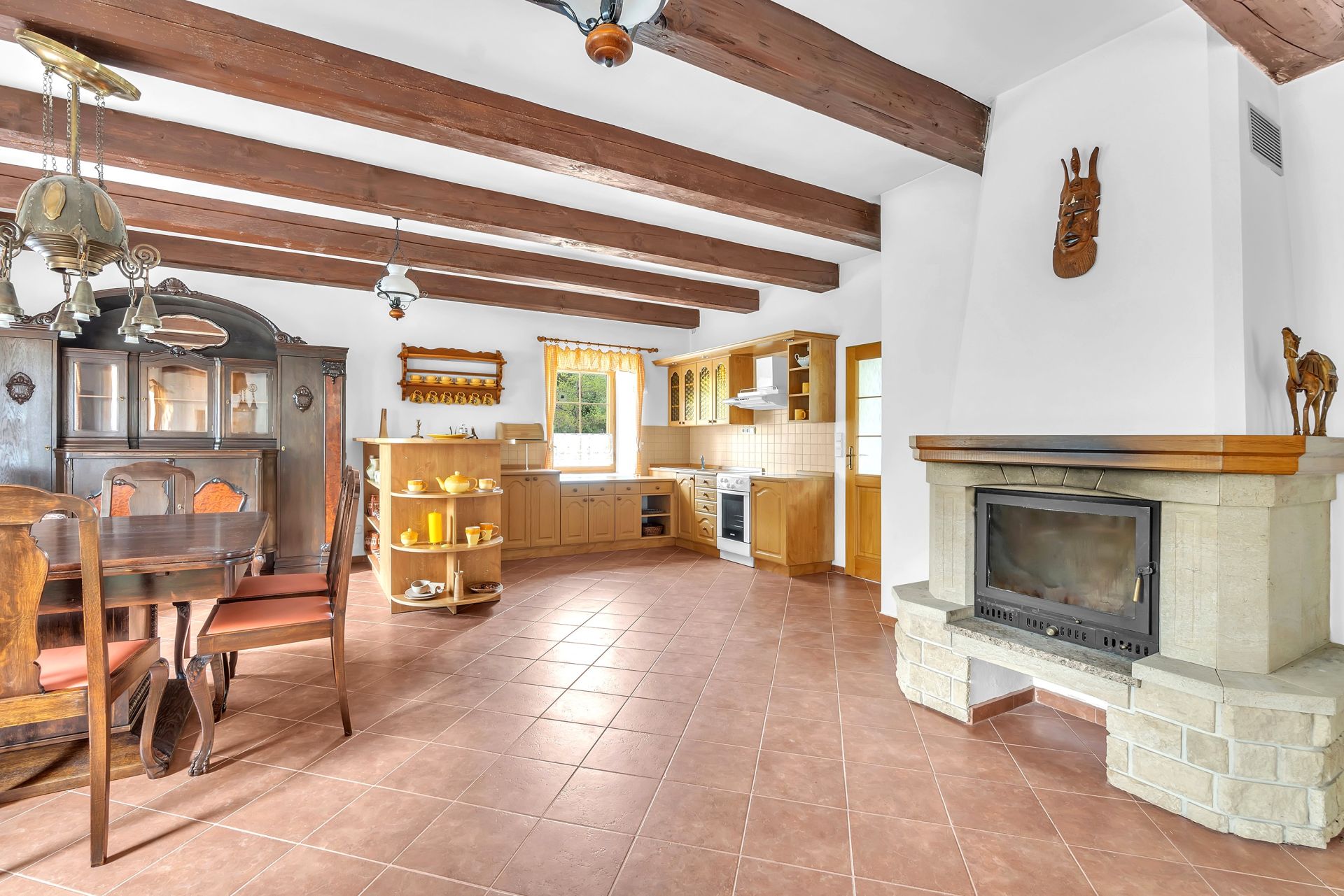 Tento samostatně stojící rodinný dům ve tvaru písmene "U" nabízí dvě bytové jednotky:2+kk s velkorysou místností se stylovými krovy – kuchyň, jídelna a obývák v jednom, samostatný pokoj, krb s rozvody tepla, koupelna se sprchovým koutem, samostatné WC, chodba, spíž.