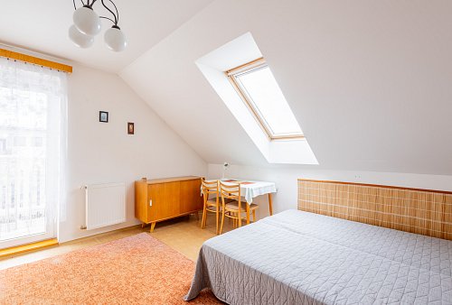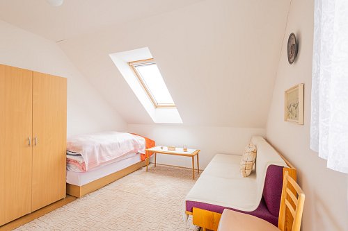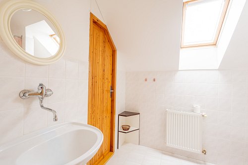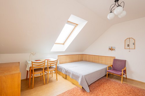 Horní patro domu skrývá půdní prostor, který čeká na svoji proměnu v pracovnu, pokoj pro hosty, hernu pro děti nebo ložnici. Možností je tolik, že jediným limitem je vaše představivost. Výborná možnost, jak zvýšit hodnotu domu a přizpůsobit ho přesně svým potřebám.