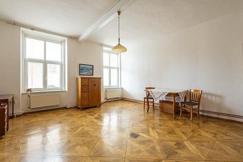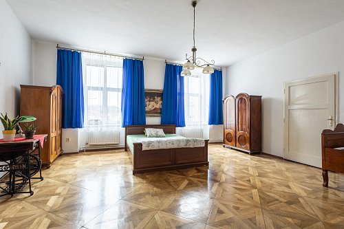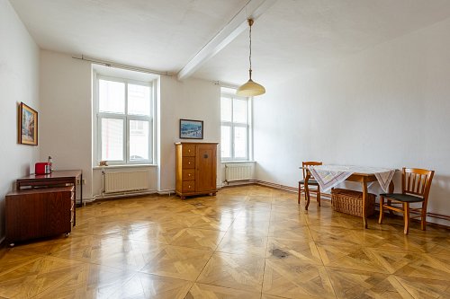Nachází se ve 2. nadzemním podlaží a nabízí dechberoucí prostor, vzdušnost a jedinečnou atmosféru, kde se starobylá elegance snoubí s osobitým moderním stylem. Velkorysá dispozice, krásné kazetové parkety, masivní dveře i promyšlené detaily vytváří prostředí, které má duši.