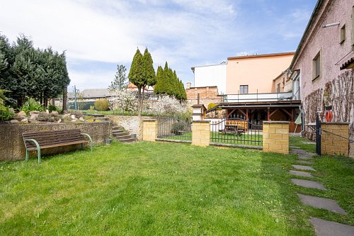 Za jeho fasádou se ukrývá svět, který překvapí. Průjezd s místem pro dvě auta vás vede do zeleného dvora, klidného zázemí s pergolou, zděnou udírnou a studnou, do níž je svedena dešťová voda pro zavlažování zahrady. Navazuje zahrada, velkorysý prostor i s příjezdem ze zadní strany, rozdělený dle podílů jednotek, ideální pro odpočinek i další využití.