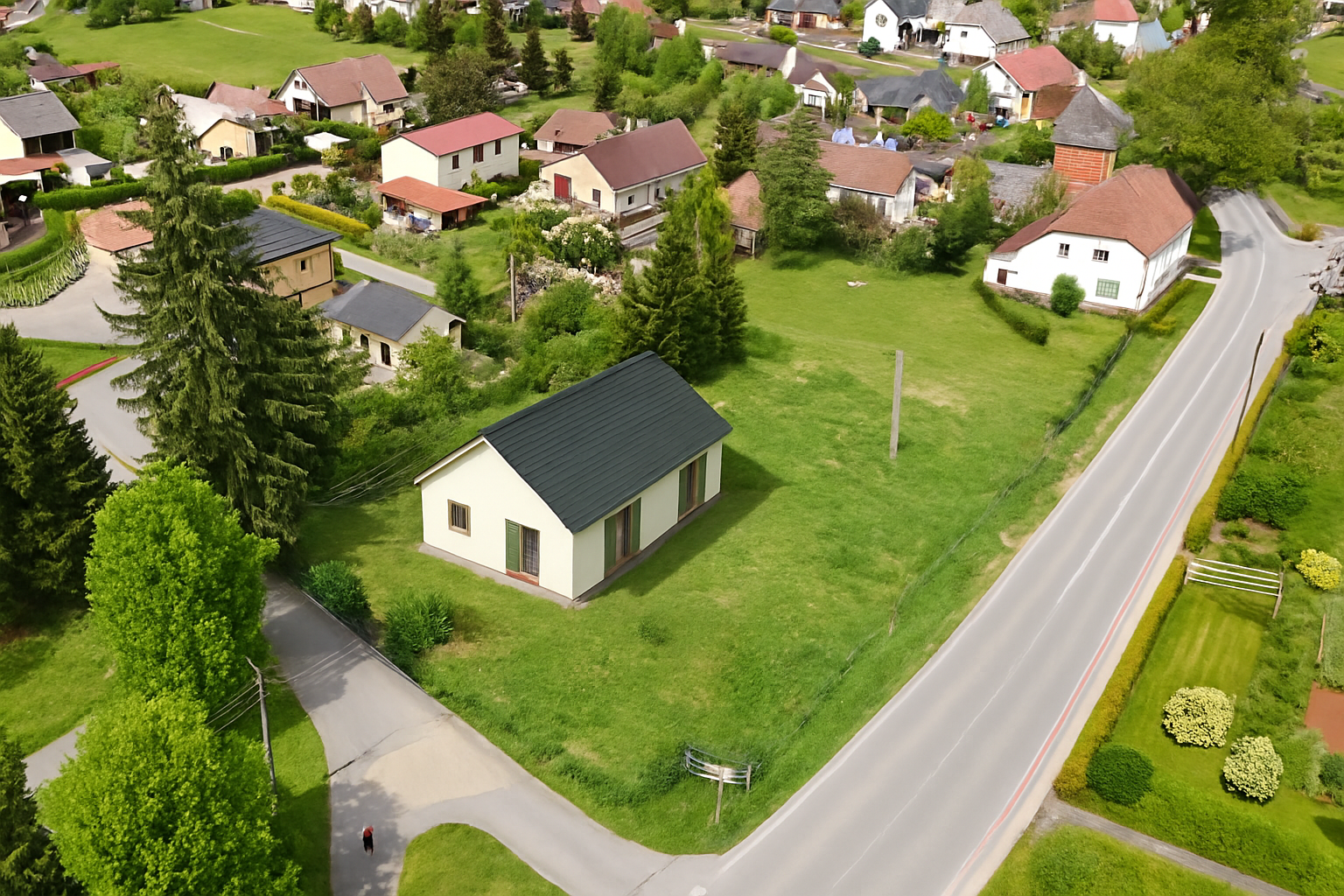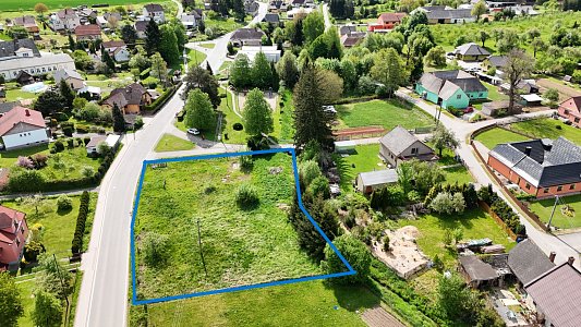 Je určen k výstavbě rodinného domu. Přístup přímo z veřejné asfaltové komunikace. Inženýrské sítě (elektřina, vodovod, kanalizace) na hranici pozemku.