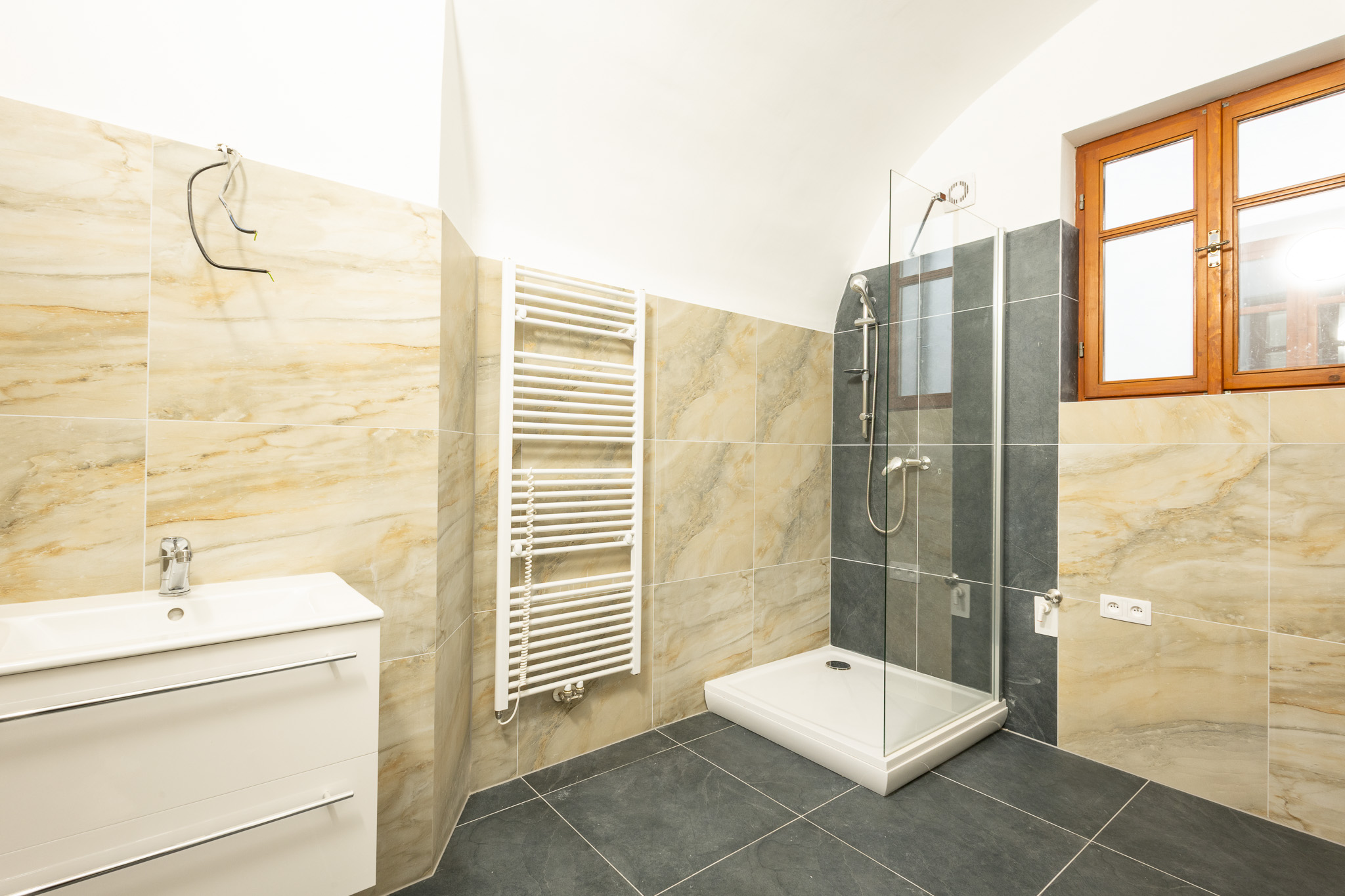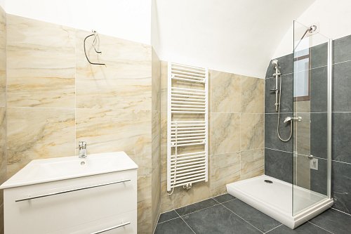 Interiér prošel kompletní rekonstrukcí a dosud voní novotou. Dominantou je luxusně prostorná koupelna se sprchovým koutem a vyhrazeným místem pro pračku i sušičku. Srdcem bytu je velká kuchyně s novou linkou, sklokeramickou deskou a troubou. O teplo a ohřev vody se stará vlastní plynový kotel, který zajišťuje plnou kontrolu nad energiemi.